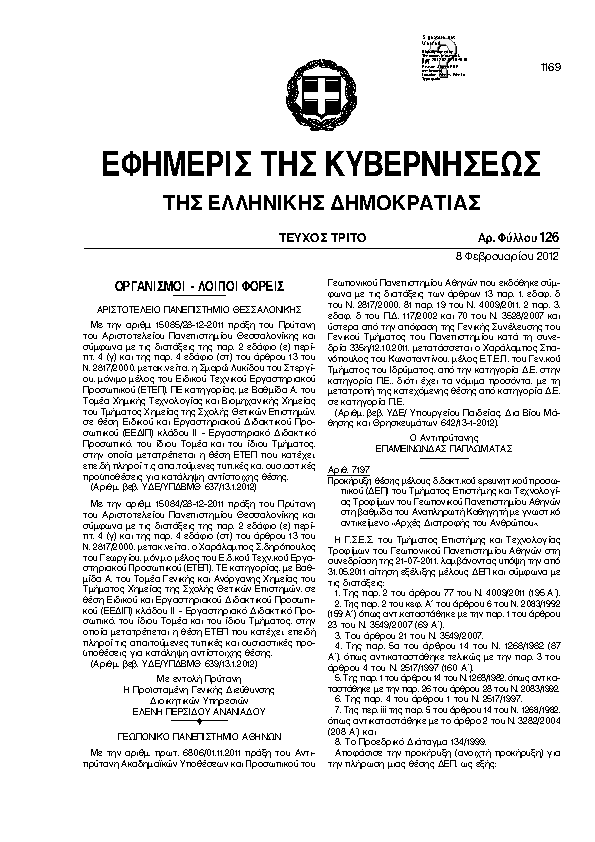 Αναζήτηση στα ΦΕΚ για:  Τεχνικό