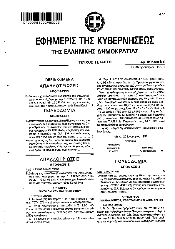 Αναζήτηση στα ΦΕΚ για:  Τεχνικό