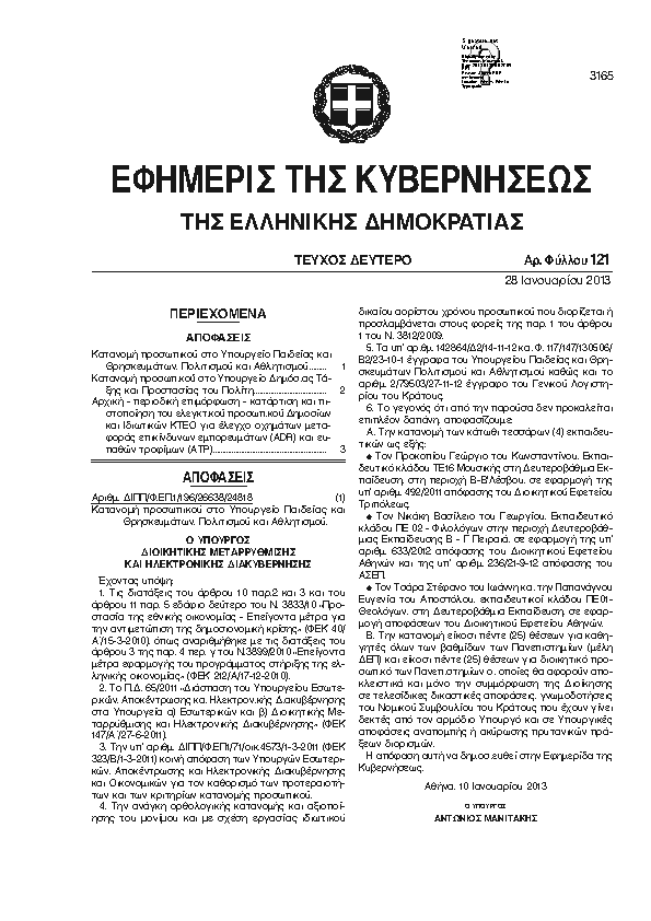 Αναζήτηση στα ΦΕΚ για:  Τεχνικό