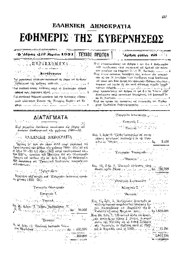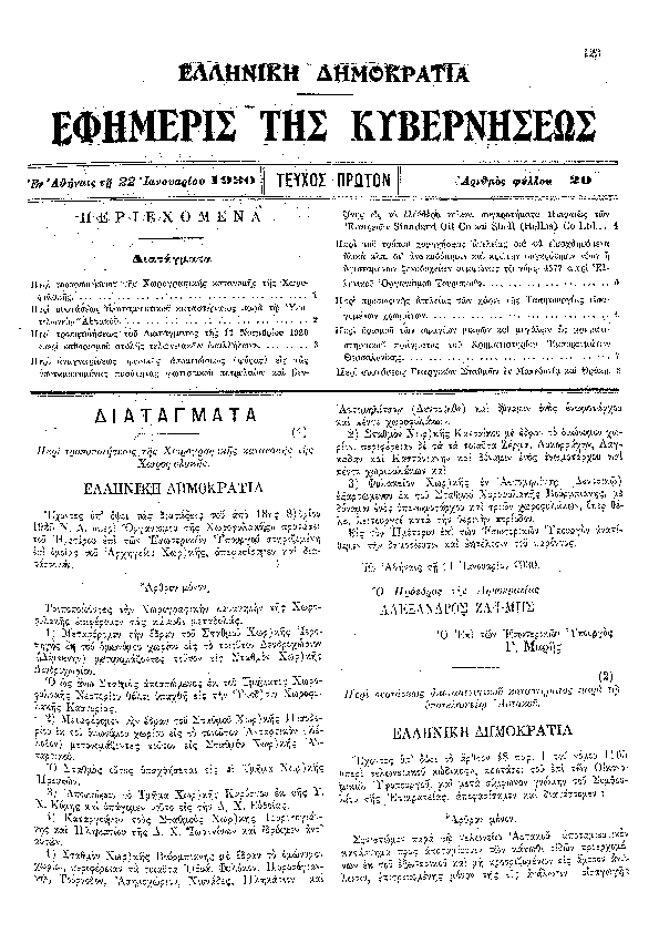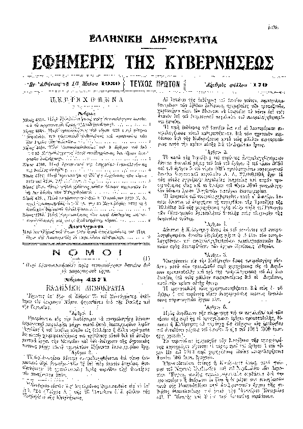 • 'ΠΕΡΙ ΕΞΟΥΣΙΟΔΟΤΗΣΕΩΣ ΠΡΟΣ ΣΥΝΟΜΟΛΟΓΗΣΙΝ ΔΑΝΕΙΟΥ ΔΙΑ ΤΑ ΠΑΡΑΓΩΓΙΚΑ ΕΡΓΑ (ΑΝAΔΗΜΟΣΙΕΥΣΙΣ ΑΠΟ ΤΟ ΕΣΦΑΛΜΕΝΟ ΥΠ'' ΑΡΙΘΜ 124/Α/1930)'