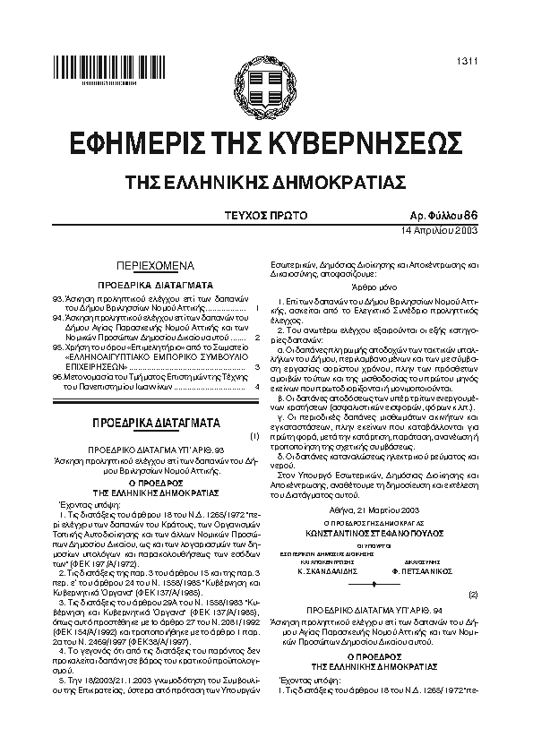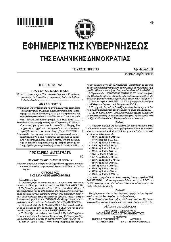 1. ΦΕΚ 4/A, 2003 http://www.et.gr/