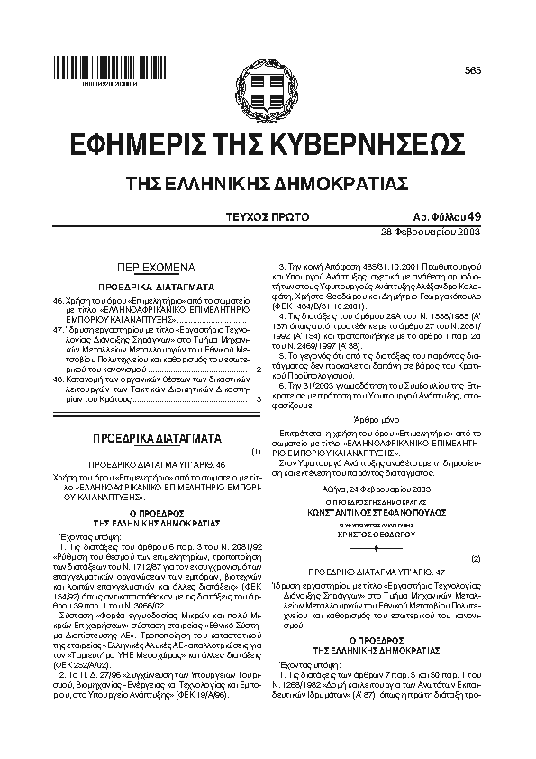 4. ΦΕΚ 49/A, 2003 http://www.et.gr/