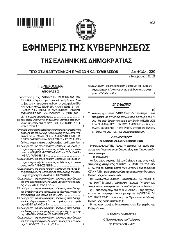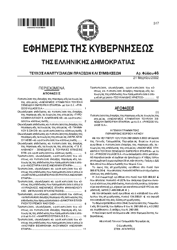 Αναζήτηση στα ΦΕΚ για:  Τουρισμού