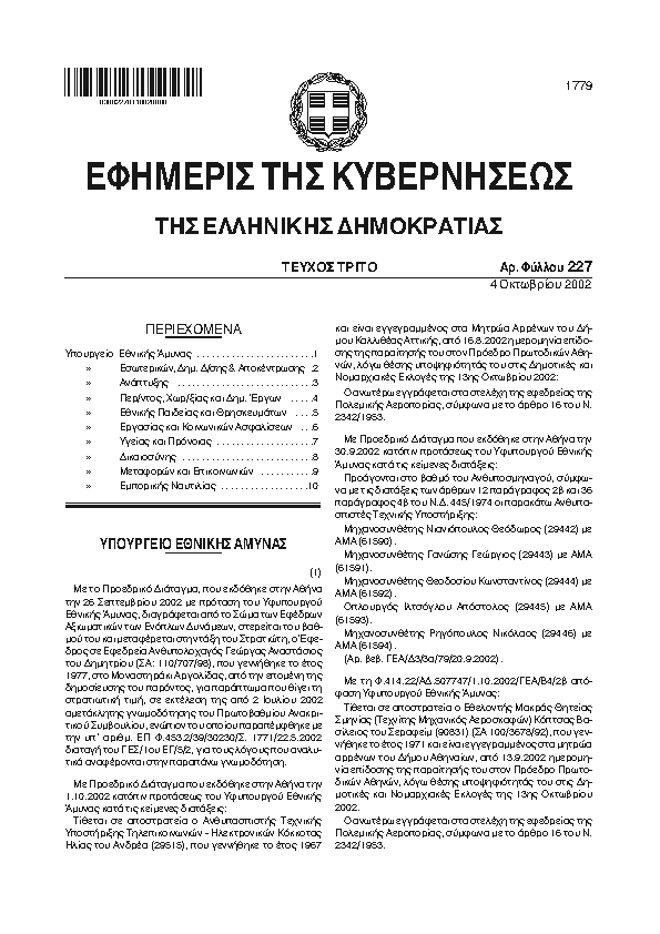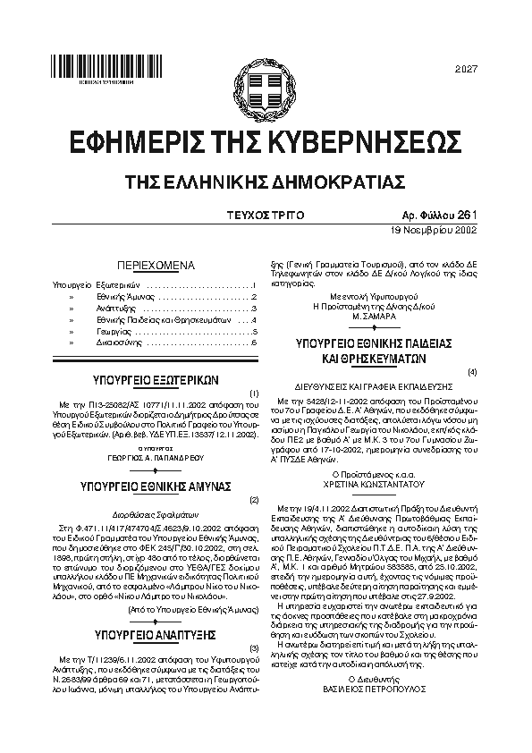 Αναζήτηση στα ΦΕΚ για:  Τουρισμού