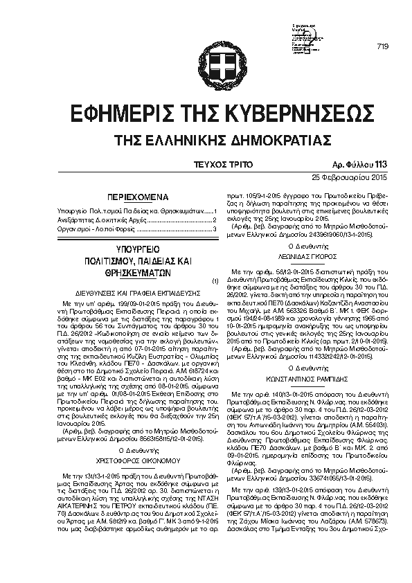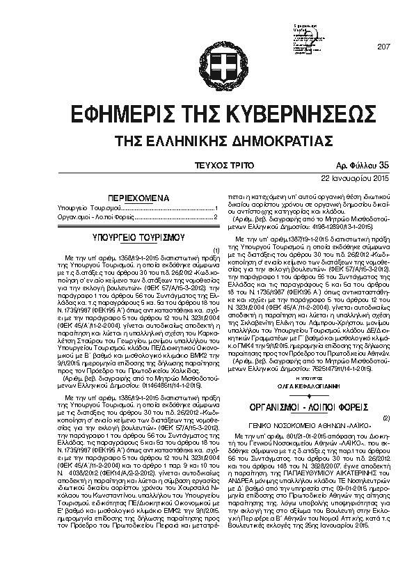 Αναζήτηση στα ΦΕΚ για:  Τουρισμού