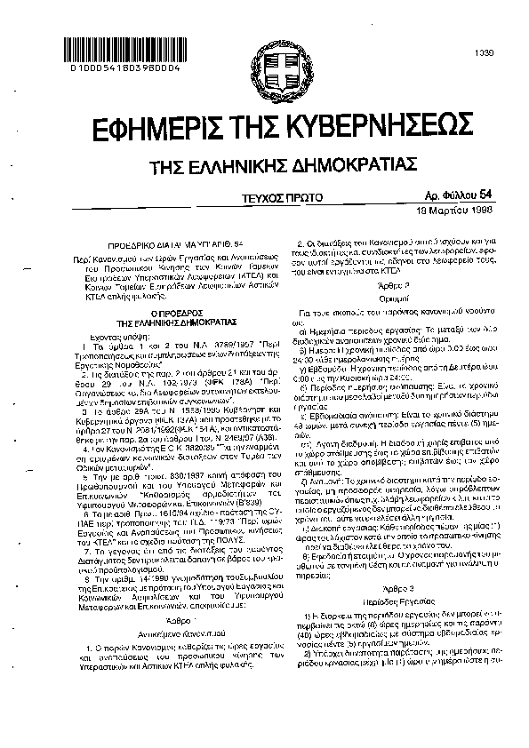 1. ΦΕΚ 54/A, 1998 http://www.et.gr/