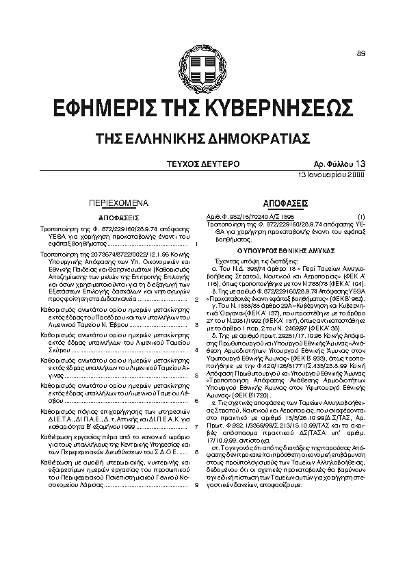 Αναζήτηση στα ΦΕΚ για:  ΥΠΕΡΩΡΙΑΚΗ ΑΠΑΣΧΟΛΗΣΗ