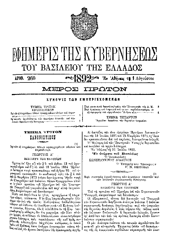 9. ΦΕΚ 226/A, 1892 http://www.et.gr/ Νόμος