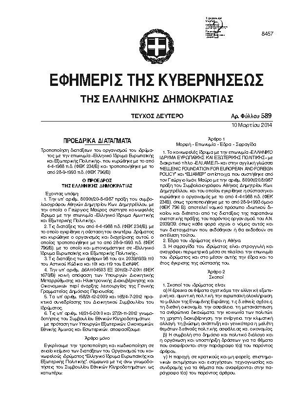 9. ΦΕΚ 281/A, 2014 http://www.et.gr/ Προεδρικό Διάταγμα