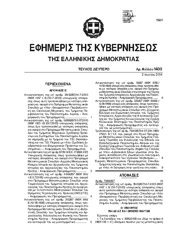 Αναζήτηση στα ΦΕΚ για:  αποδελτίωση