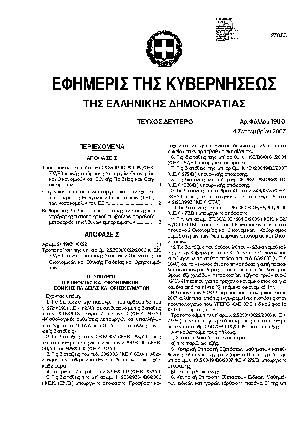 Αναζήτηση στα ΦΕΚ για:  αποκομμάτων