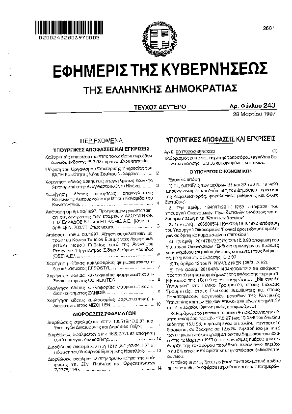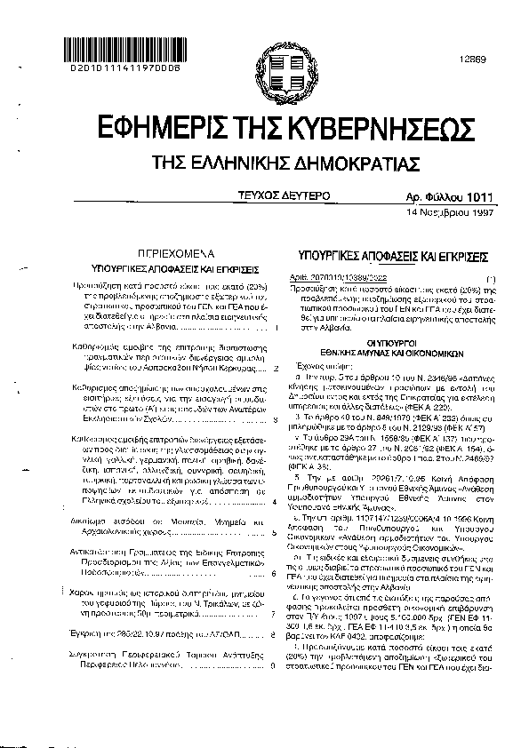 Αναζήτηση στα ΦΕΚ για:  αποκομμάτων