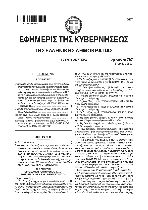 Αναζήτηση στα ΦΕΚ για:  αποκομμάτων