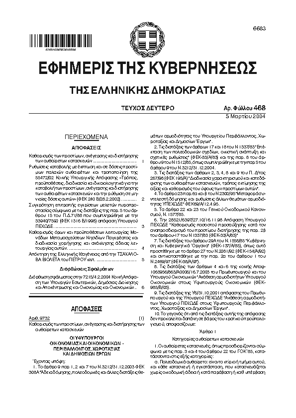 Αναζήτηση στα ΦΕΚ για:  αυθαιρετα