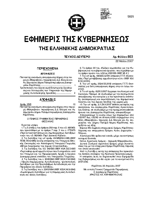 Αναζήτηση στα ΦΕΚ για:  αυθαιρετα