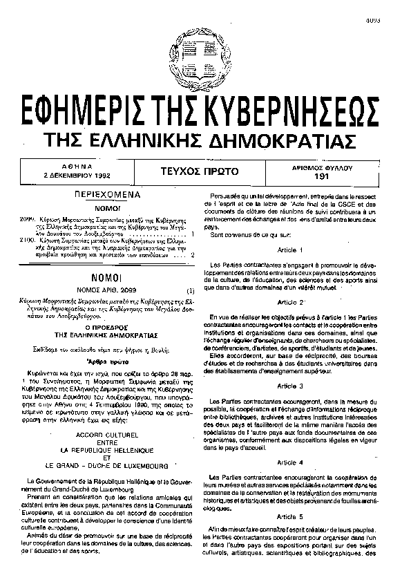 • ΚΥΡΩΣΗ ΜΟΡΦΩΤΙΚΗΣ ΣΥΜΦΩΝΙΑΣ ΜΕΤΑΞΥ ΤΗΣ ΚΥΒΕΡΝΗΣΗΣ ΤΗΣ ΕΛΛΗΝΙΚΗΣ ΔΗΜΟΚΡΑΤΙΑΣ ΚΑΙ ΤΗΣ ΚΥΒΕΡΝΗΣΗΣ ΤΟΥ ΜΕΓΑΛΟΥ ΔΟΥΚΑΤΟΥ ΤΟΥ ΛΟΥΞΕΜΒΟΥΡΓΟΥ.