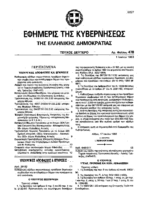 Αναζήτηση στα ΦΕΚ για:  αυθαιρετα