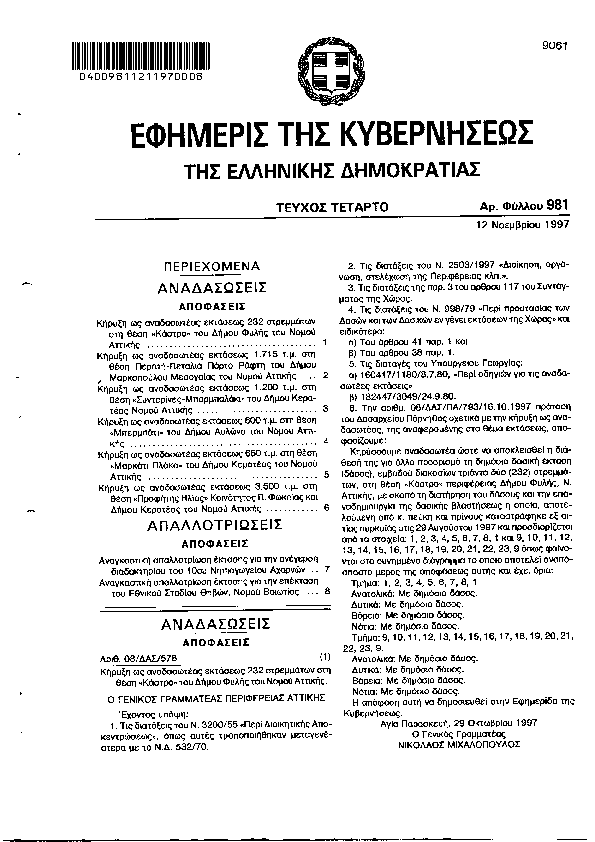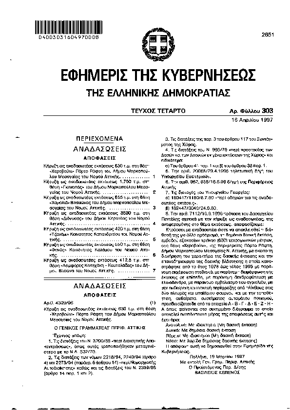 Αναζήτηση στα ΦΕΚ για:  αυθαιρετα