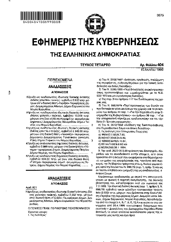 Αναζήτηση στα ΦΕΚ για:  αυθαιρετα