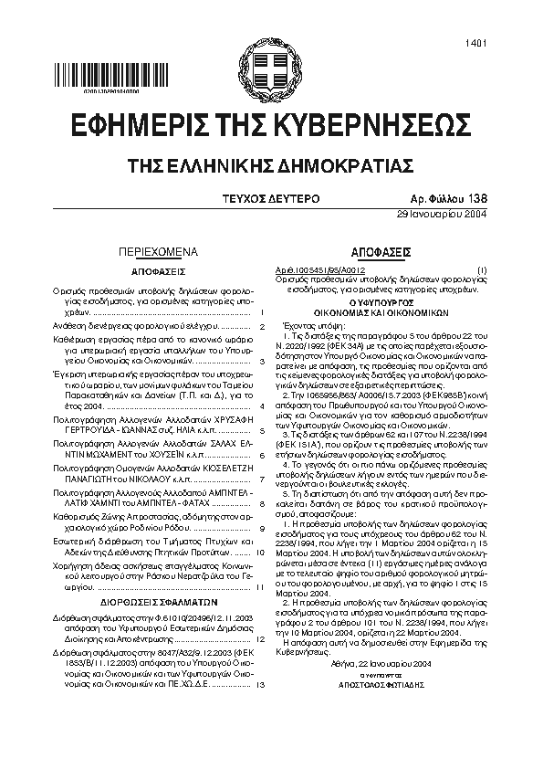 Αναζήτηση στα ΦΕΚ για:  δημοσ
