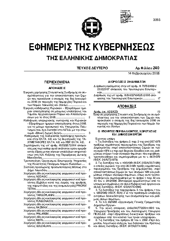 Αναζήτηση στα ΦΕΚ για:  δημοσ