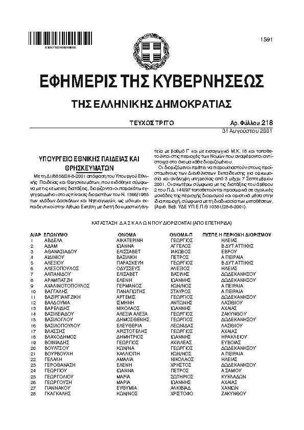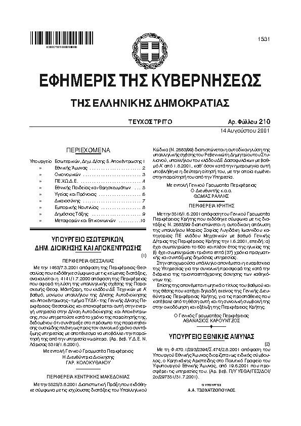 Αναζήτηση στα ΦΕΚ για:  δημοσ