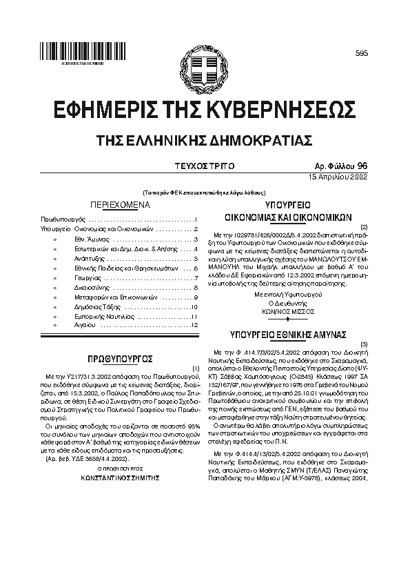 Αναζήτηση στα ΦΕΚ για:  δημοσ
