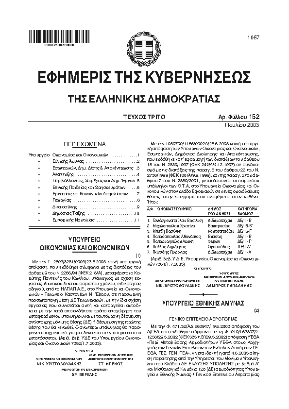 Αναζήτηση στα ΦΕΚ για:  δημοσ