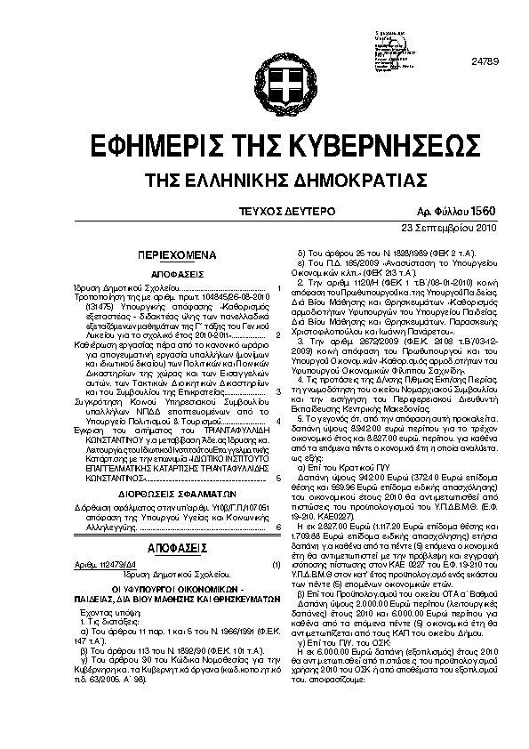 Αναζήτηση στα ΦΕΚ για:  δημοτικό καστοριάς