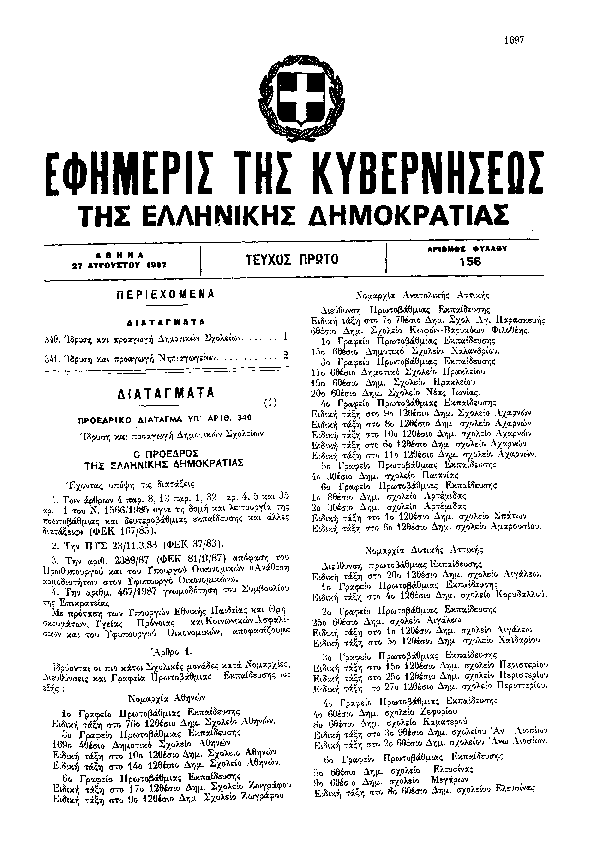 2. ΦΕΚ 156/A, 1987 http://www.et.gr/ Προεδρικό Διάταγμα