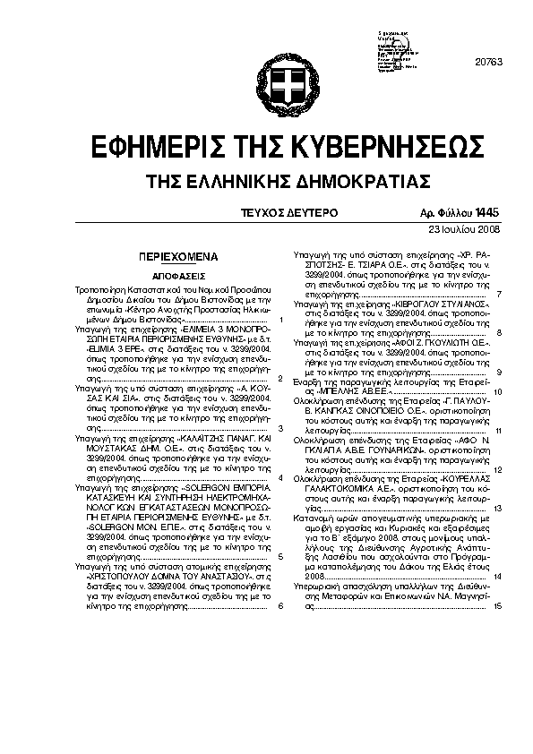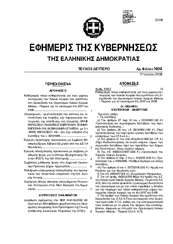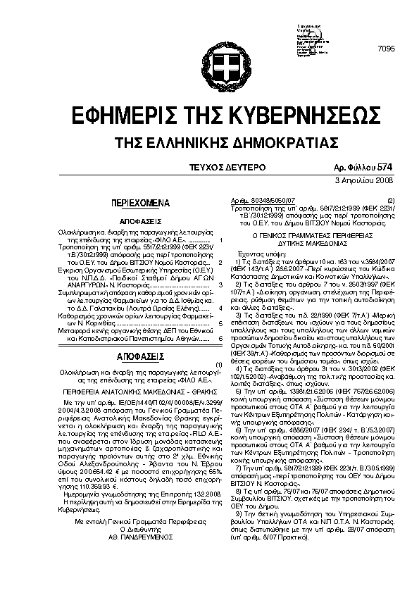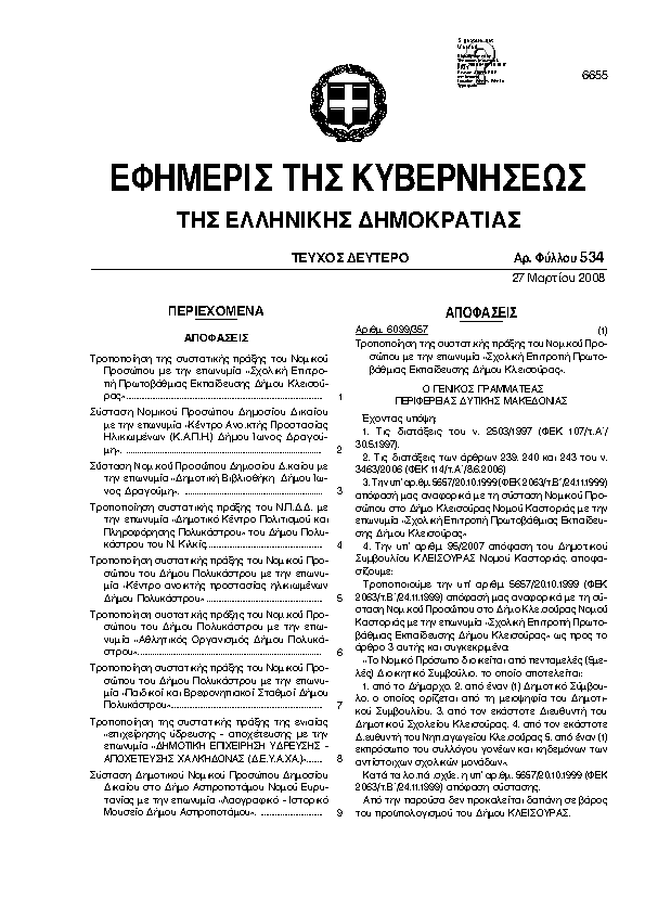 Αναζήτηση στα ΦΕΚ για:  δημοτικό καστοριάς