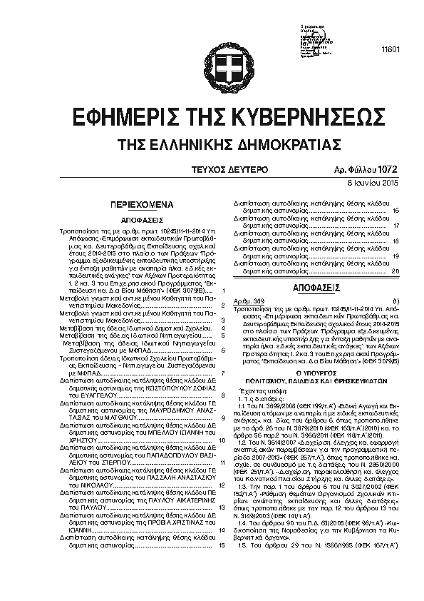 Αναζήτηση στα ΦΕΚ για:  δημοτικό καστοριάς