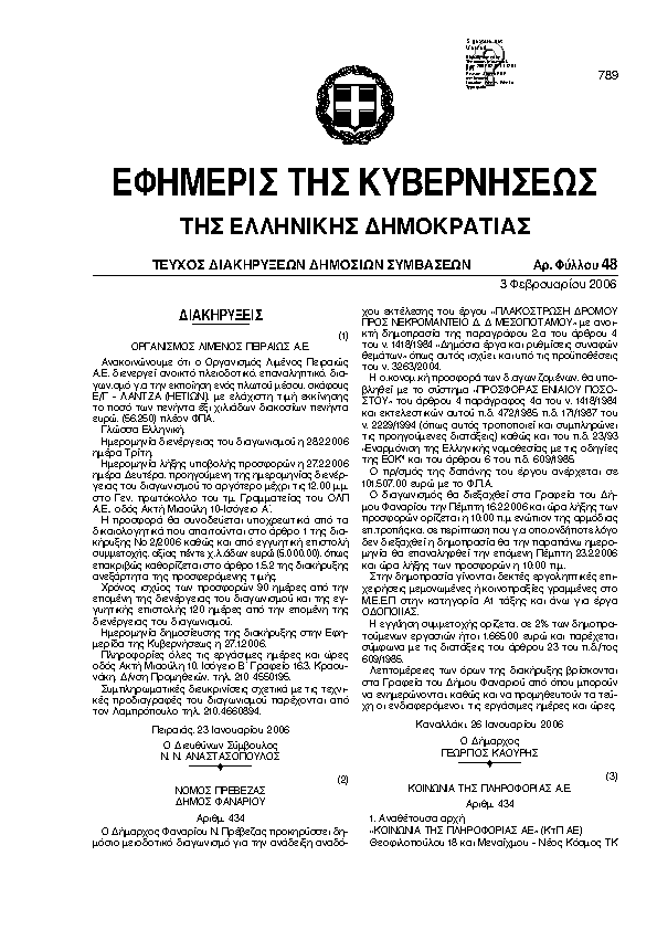 Αναζήτηση στα ΦΕΚ για:  δημοτικό καστοριάς