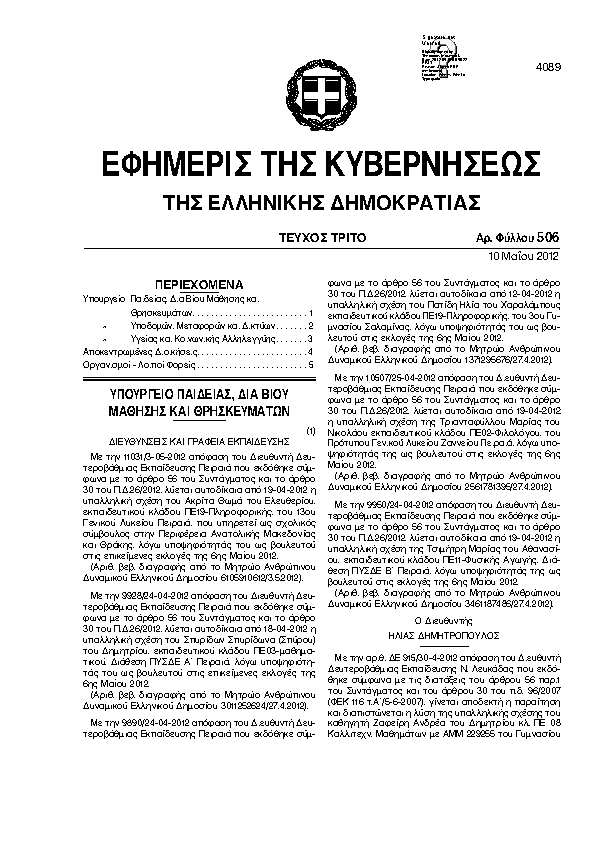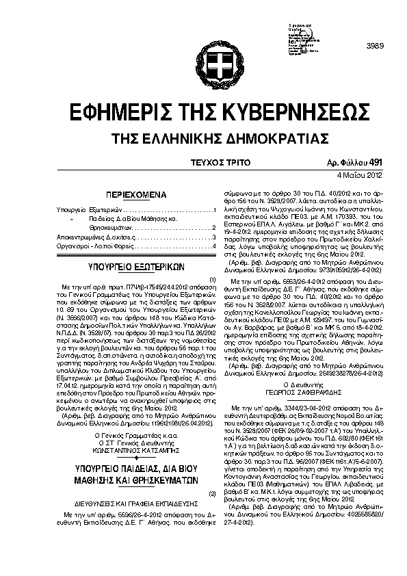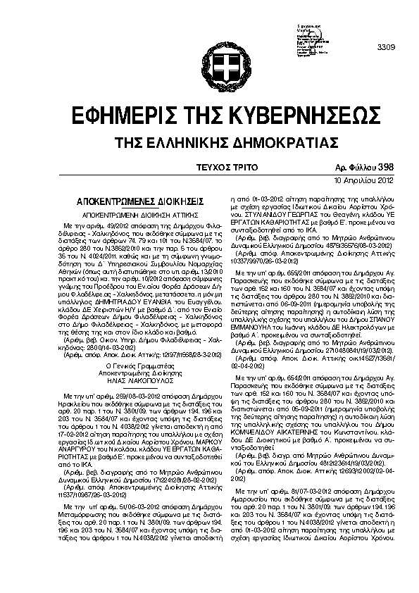 Αναζήτηση στα ΦΕΚ για:  δημοτικό καστοριάς