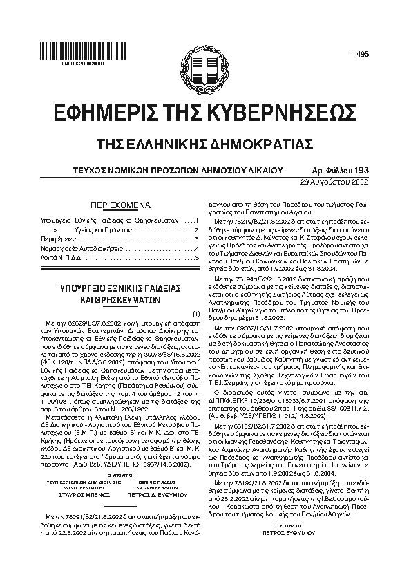 Αναζήτηση στα ΦΕΚ για:  δημοτικό καστοριάς