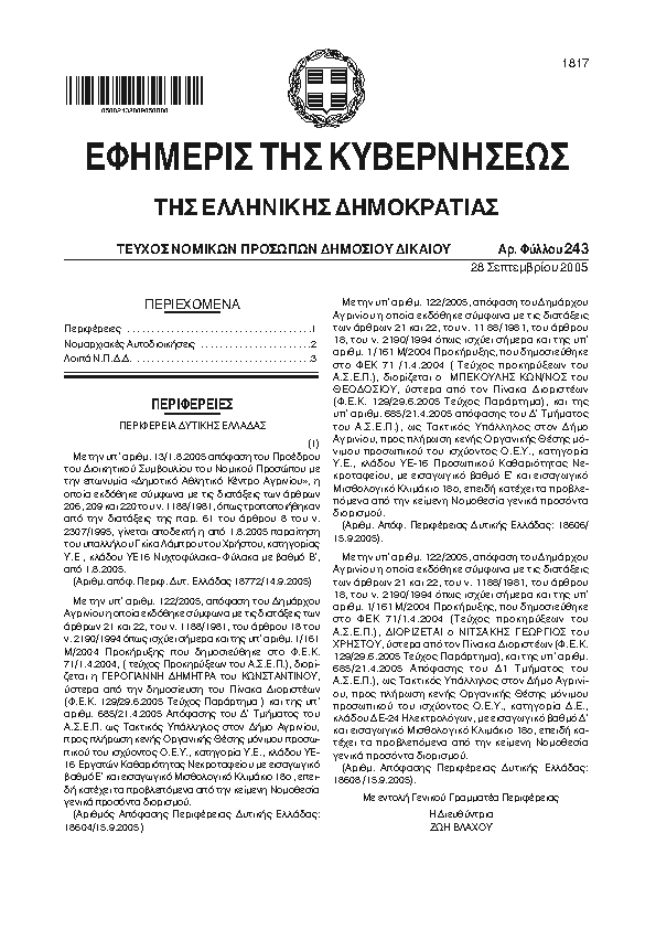 Αναζήτηση στα ΦΕΚ για:  δημοτικό καστοριάς