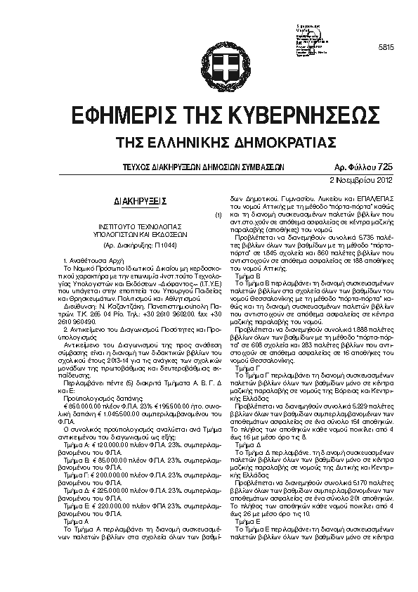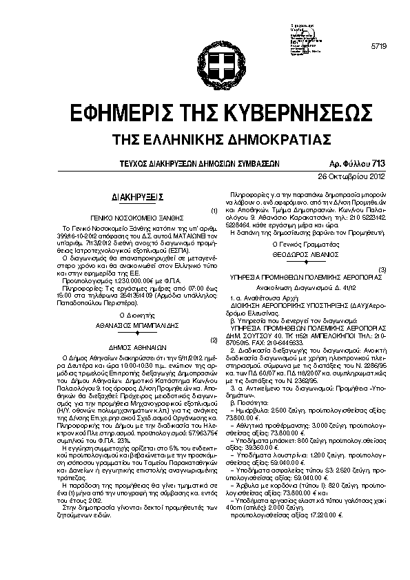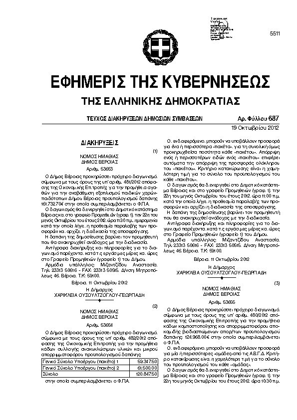 Αναζήτηση στα ΦΕΚ για:  δημοτικό καστοριάς