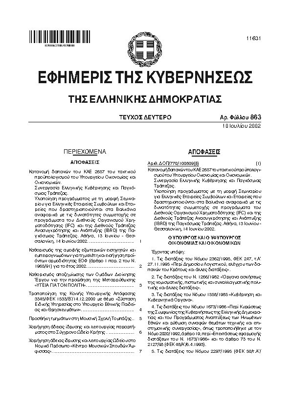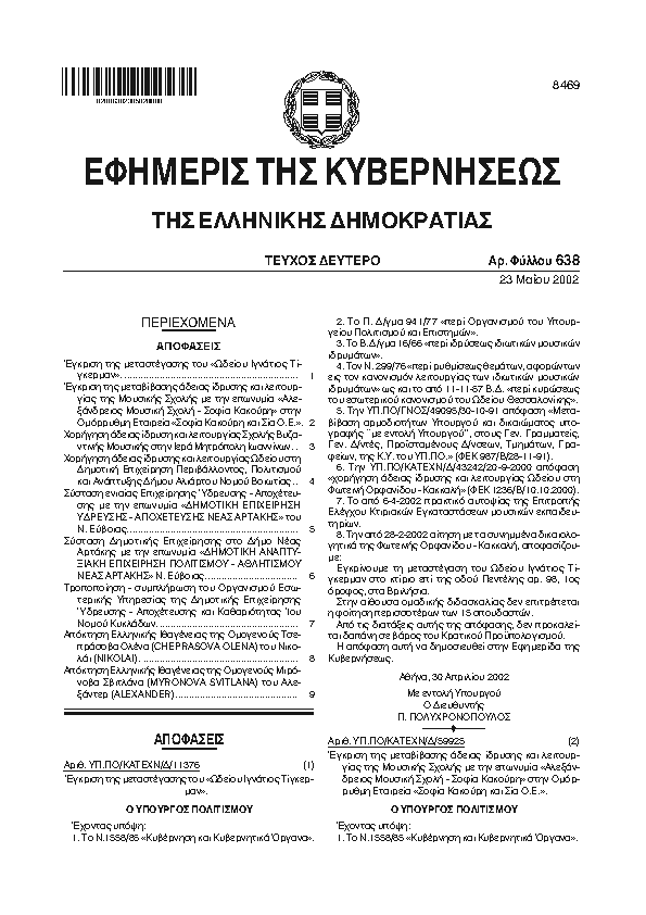 Αναζήτηση στα ΦΕΚ για:  δημοτικό ωδείο