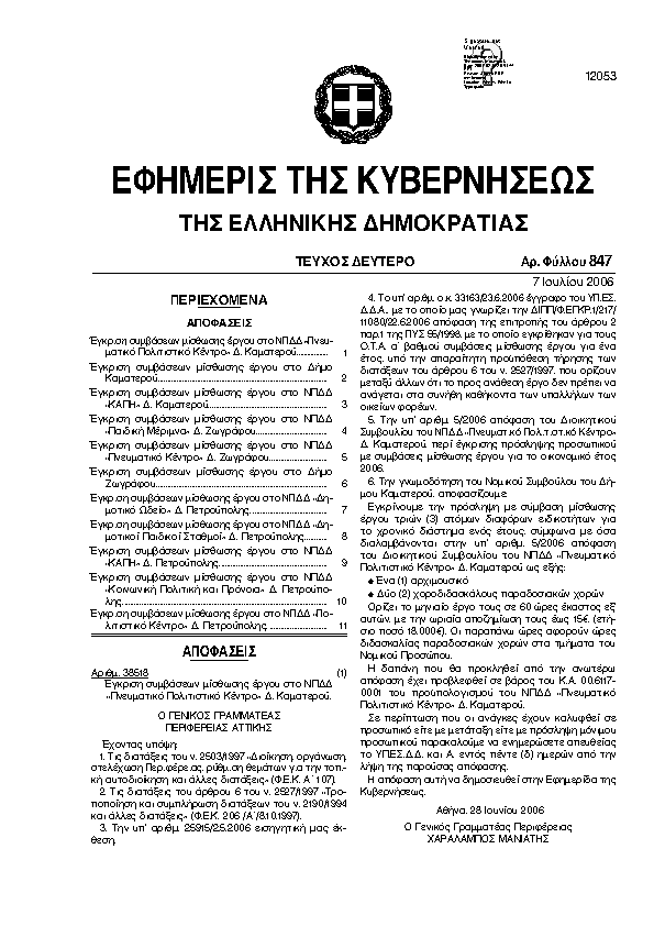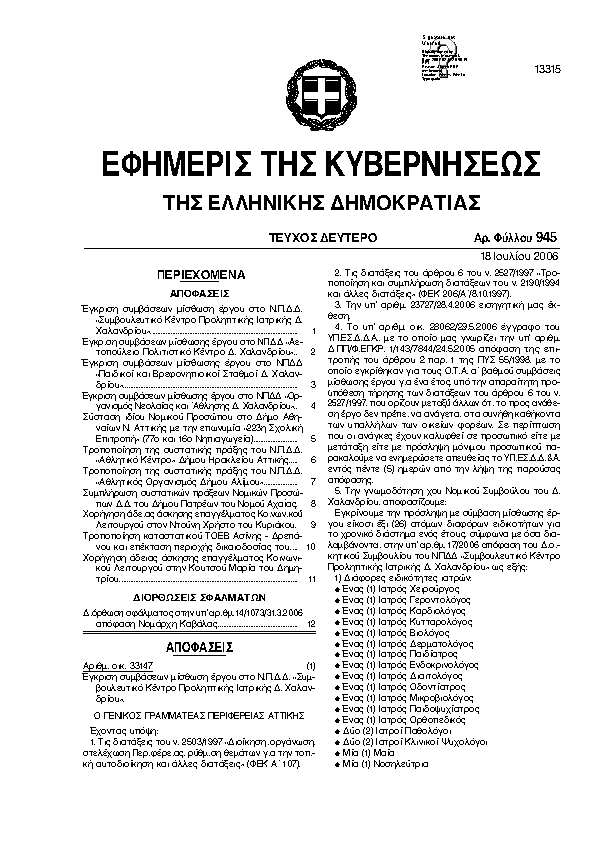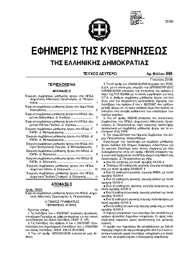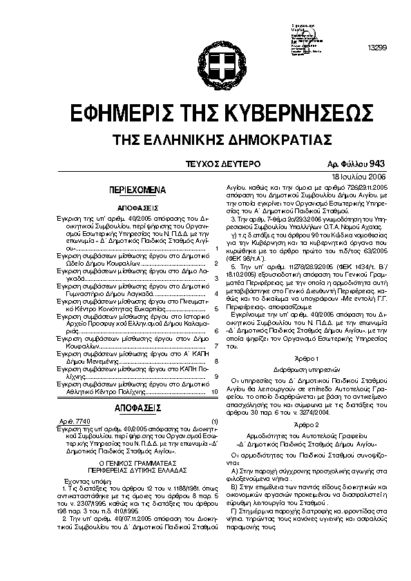 Αναζήτηση στα ΦΕΚ για:  δημοτικό ωδείο