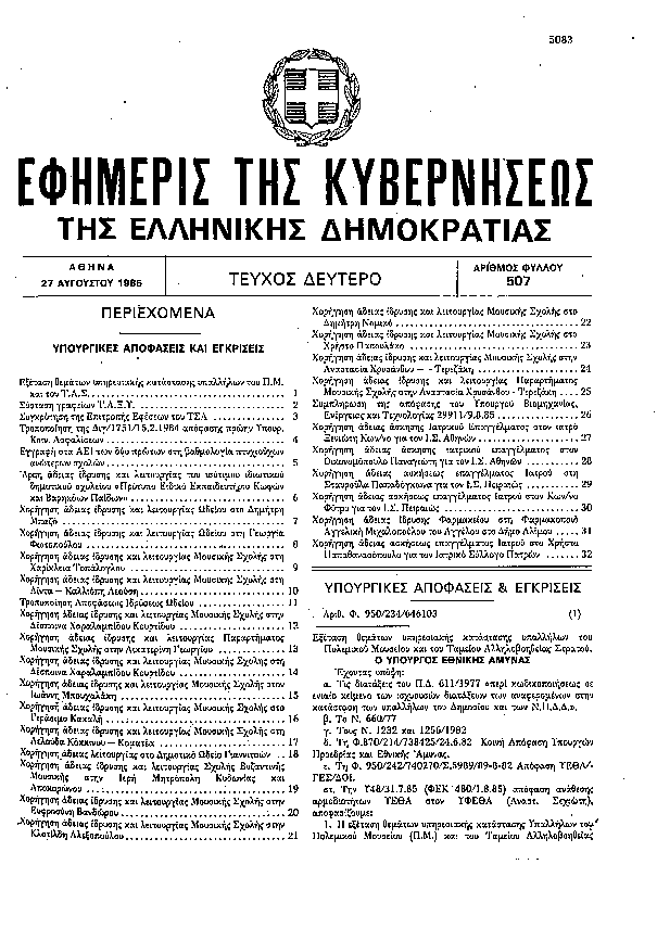 Αναζήτηση στα ΦΕΚ για:  δημοτικό ωδείο