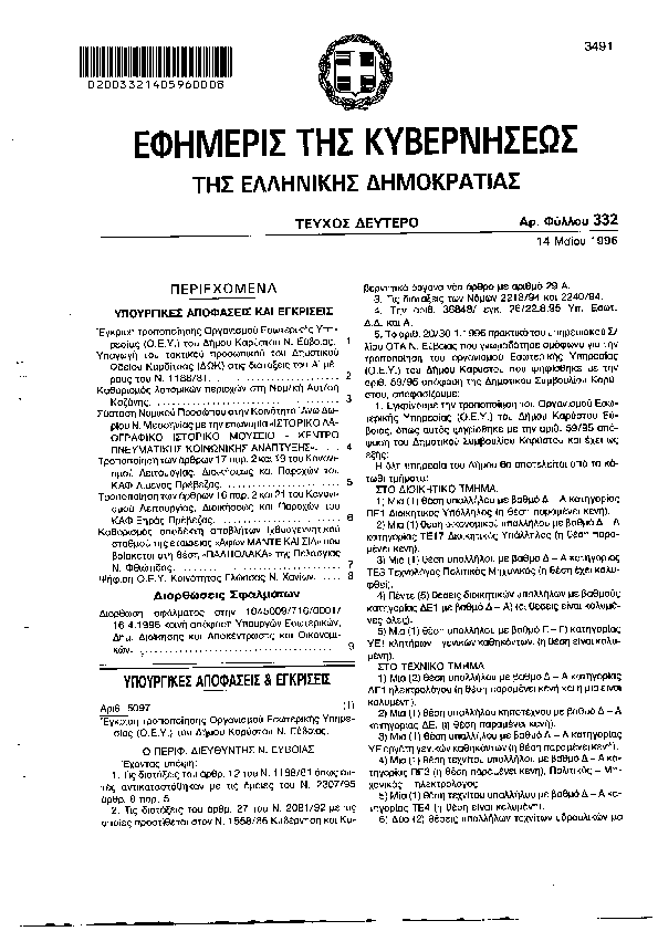 Αναζήτηση στα ΦΕΚ για:  δημοτικό ωδείο