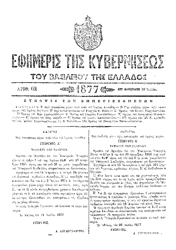 2. ΦΕΚ 76/A, 1877 http://www.et.gr/ Νόμος