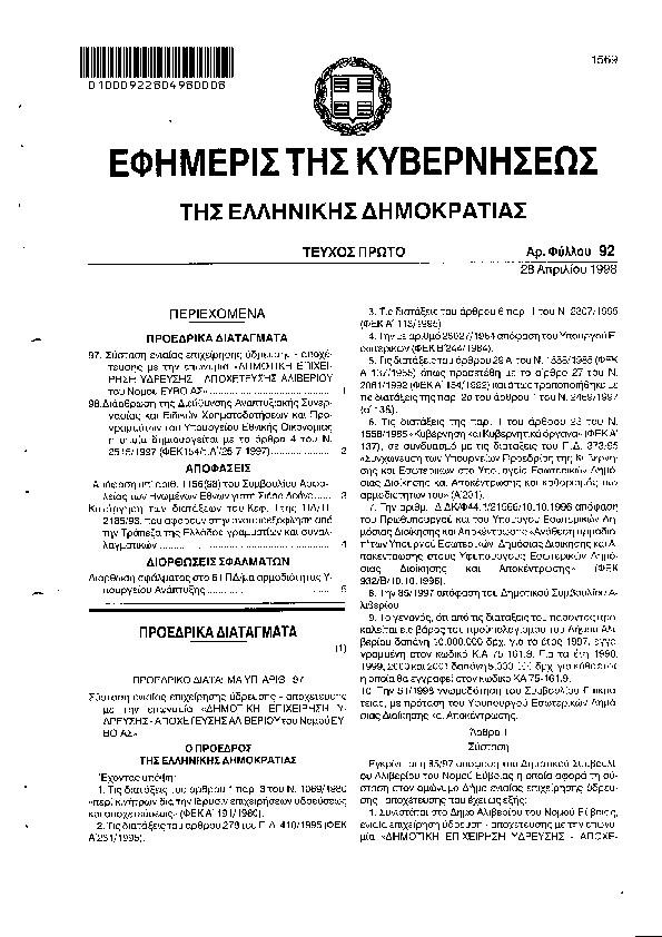 10. ΦΕΚ 97/A, 1998 http://www.et.gr/