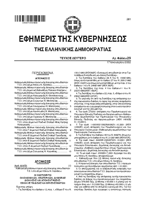 Αναζήτηση στα ΦΕΚ για:  δημοτικό