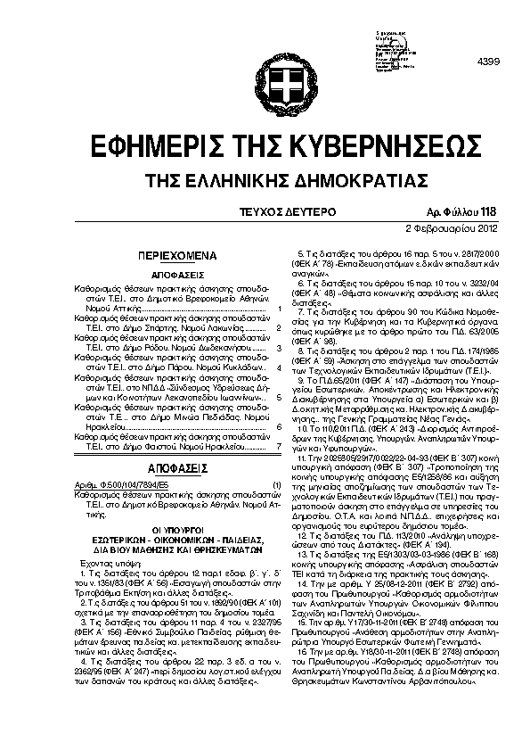 Αναζήτηση στα ΦΕΚ για:  δημοτικό
