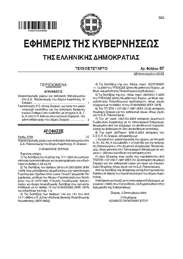 Αναζήτηση στα ΦΕΚ για:  δημοτικό