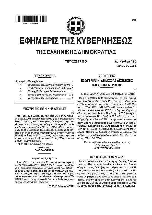 Αναζήτηση στα ΦΕΚ για:  δημοτικό