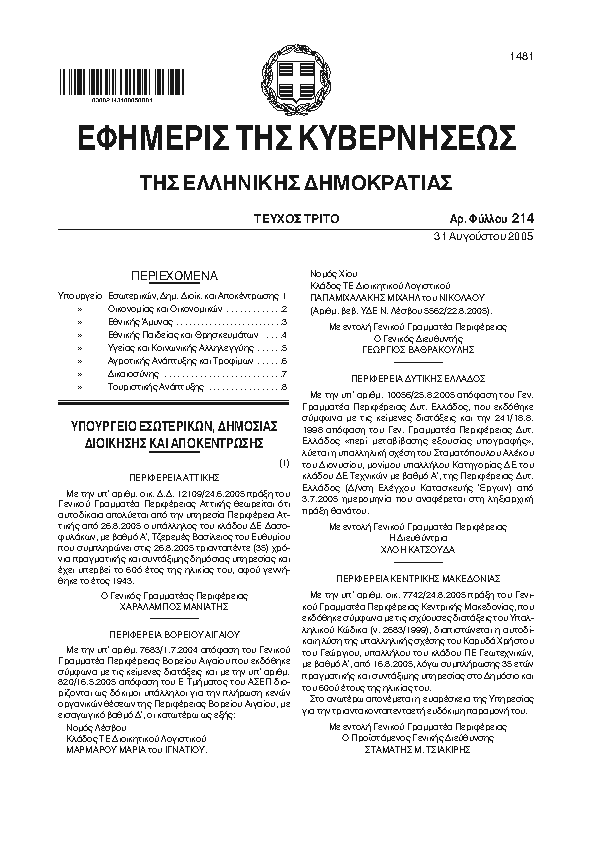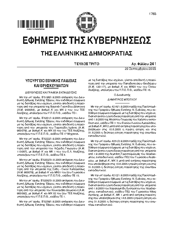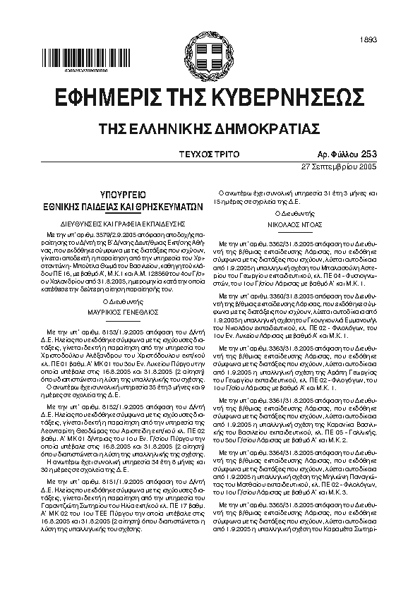 Αναζήτηση στα ΦΕΚ για:  δημοτικό