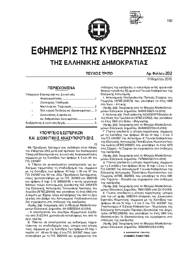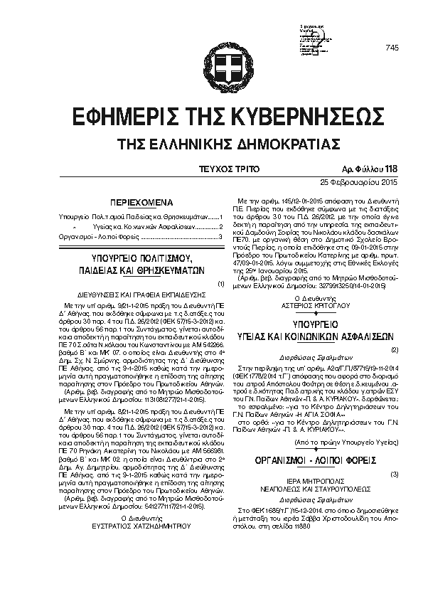 Αναζήτηση στα ΦΕΚ για:  δημοτικό