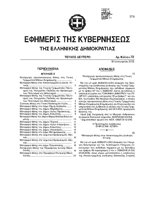 Αναζήτηση στα ΦΕΚ για:  δημοτικό